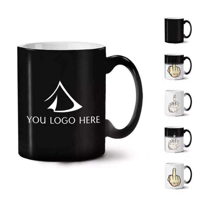 This is really a cute mug. When you put into hot water, the color of the mug will change and the picture will be show. The mug features a fashion heart-shaped handle, making it the perfect advertising gift!