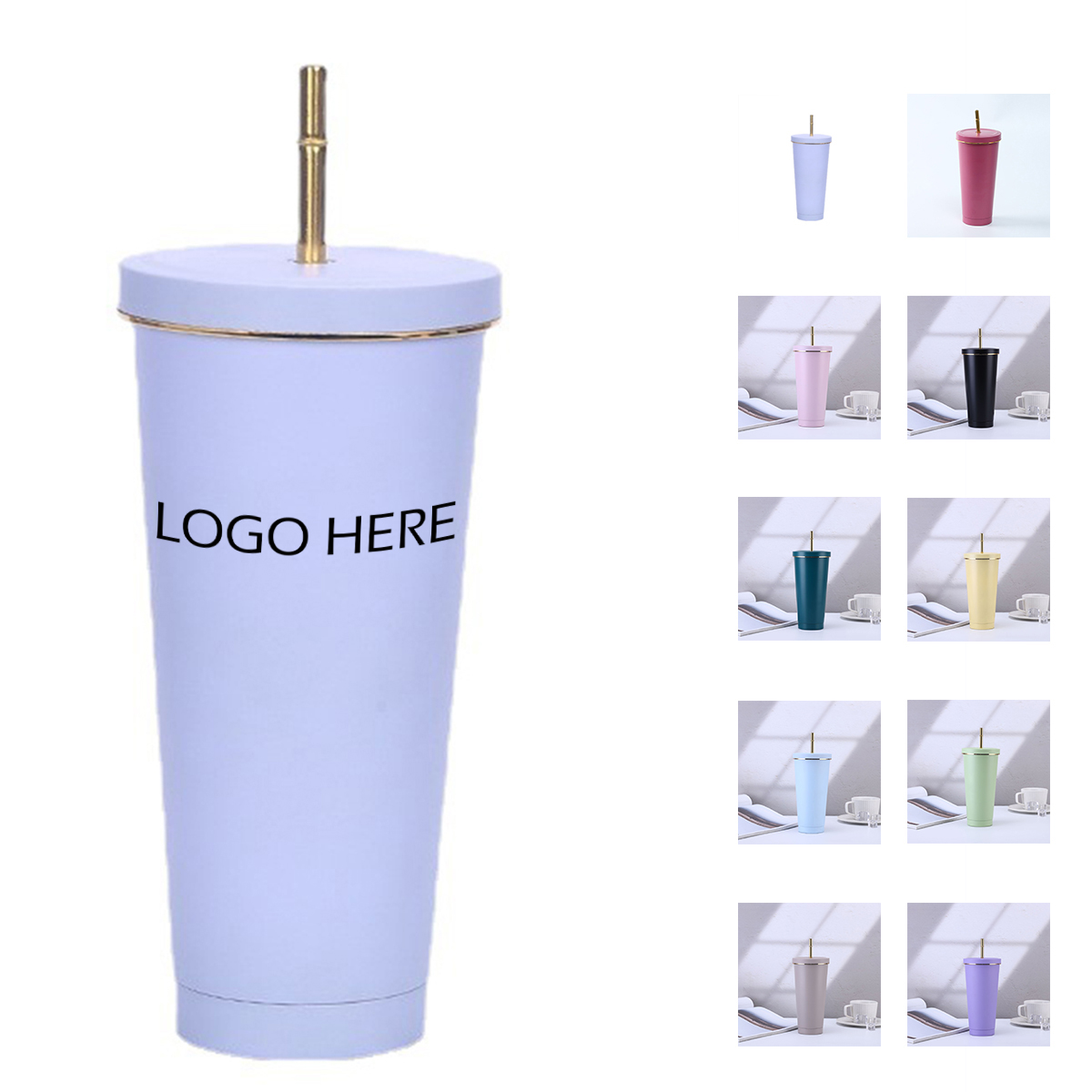 This stainless steel tumbler can keep beverages hot, cold, or iced for hours and has a gold border lid. Double wall insulated tumbler keeps your coffee piping hot and your smoothies frosty. Just pour your beverage in and screw on the lid. Perfect for your morning commute – keeps your drink hot or cold in the car, is made of stainless steel and includes a reusable straw.