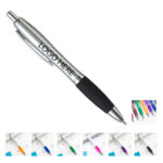 The best selling ball pen comes with silver ABS body with a soft PVC belt providing a better writing feel. The ball point pen has black ink and a medium point. A good option for promotions and gifts.