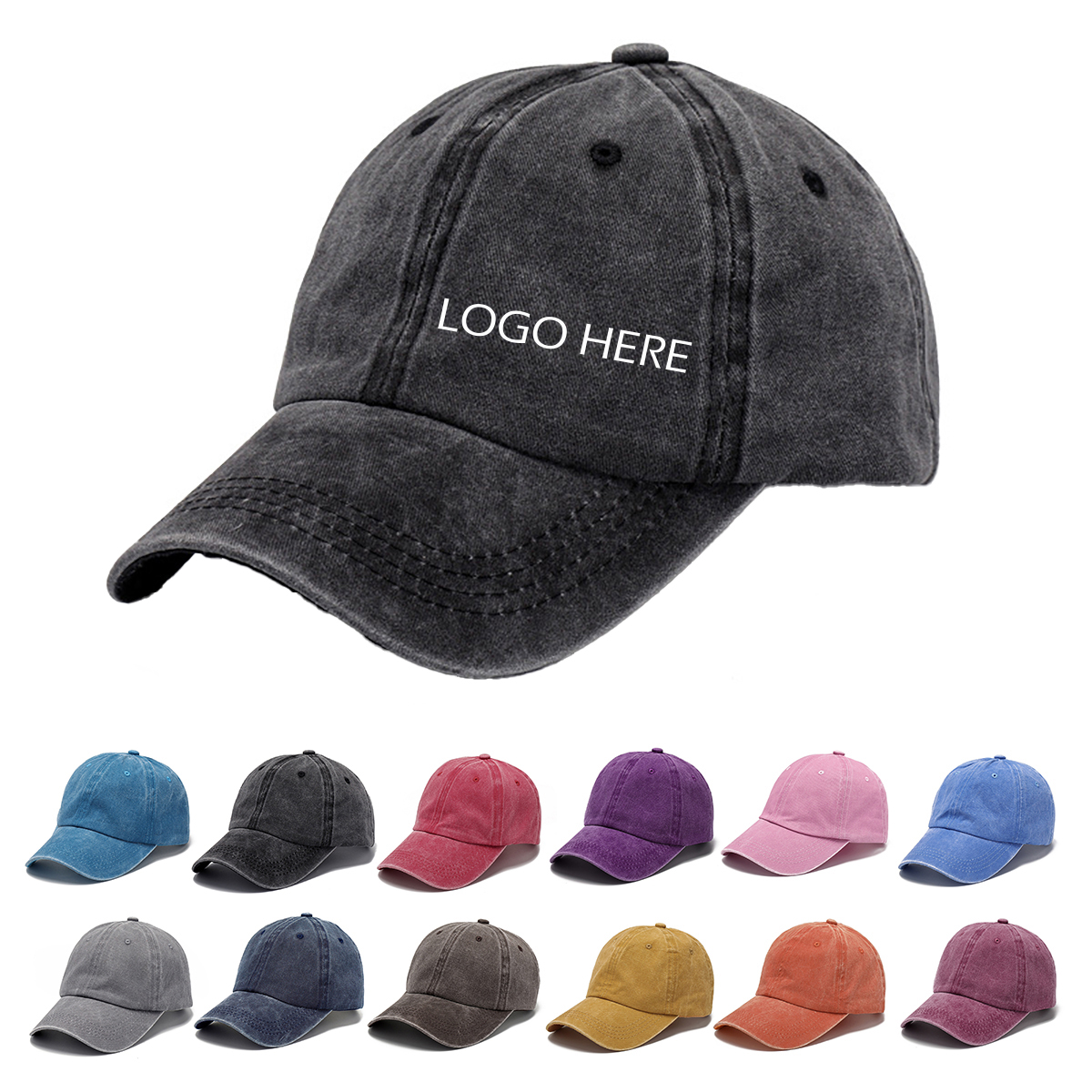 This baseball cap has a vintage and distressed appearance, with a six-panel construction, sewn eyelets for ventilation and an internal sweatband for added comfort. The design features a pre-curved visor and an adjustable rear hook and loop closure.