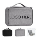 It can hold a lot of things, such as cables, external driver, flashdrive, basic first aid items, charger, several USB cables, scissors, makeup, passport, memory cards, Gps, mini cameras, smartphones. The mesh pockets and elastic loops can also hold various items like cables, flash disk, USB drive, Power, Phone, Charger, Passport, Cashes, Headphone and etc. It also can be a cosmetic carrying bag. This Organizer case helps you to keep things separated and shipshape.